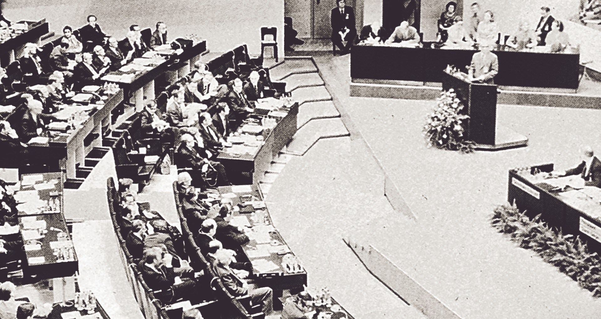 Ο Κωνσταντίνος Καραμανλής στο βήμα της Διάσκεψης του Ελσίνκι